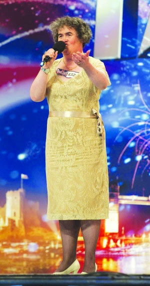 近日在英国最红的明星应该是参加《英国达人》选秀的苏珊·波伊尔了。在她走上台时,根本没人想听她唱歌。她水桶腰、满脸皱纹、和小猫居住、一辈子没约会过更没和男人接过吻……