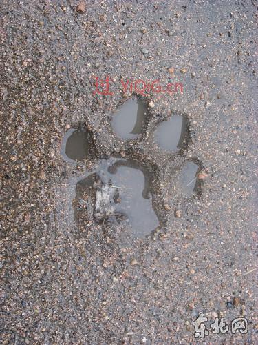 闻讯而来的农场新闻工作者拍下了动物的背影照片。护林员还找到动物体毛,并做出两个爪印模型。经两名专家鉴定,这只动物是一只成体雄性野生东北虎。