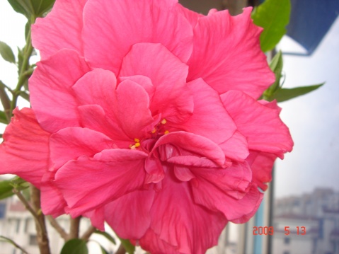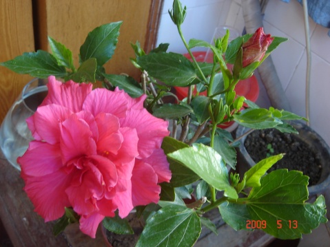 前一阵子,我们家买了一盆扶桑花,回家看到已经有两个花苞了,我好高兴哦!过了几天,扶桑花开了,花朵好大好大的,颜色也不错,发点图给大家看看: