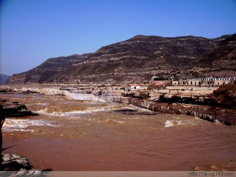 春天,黄河滋润着黄色的泥土,浸湿了黄土地苏醒复活了。朝阳处的黄河之水顺着斜谷流过来,冲出山涧。流水声一天比一天响起来,最后成为一股汹涌的奔流,冲到山下流进河里,河面突然变得宽阔了。