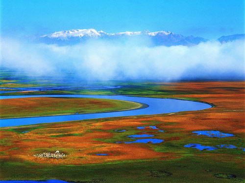 开都河的九曲十八弯,是在是奇景,尤其是日落时分,夕阳的余晖洒在每道河的河湾上,美丽万分。据当地人说,最美的时候,可以倒映出九个太阳。