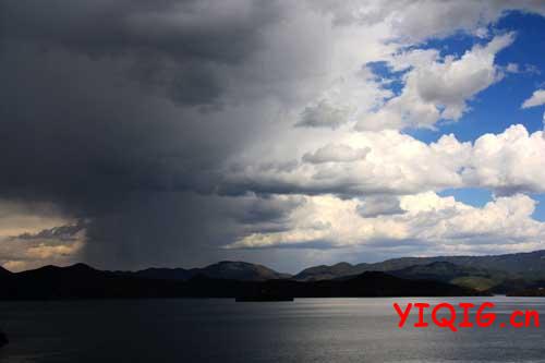 你造中间那是什么吗......那是一片云正在下雨(里面还会打雷有闪电)......当时第一次见到,觉得好神奇。www.yiqig.cn