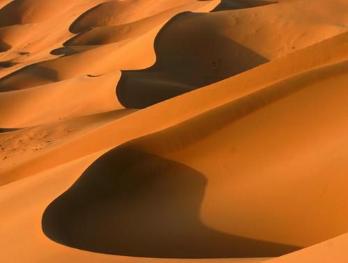 塔克拉玛干沙漠流动沙丘面积广大,沙丘高度一般在100-200米,最高达300米左右,沙漠腹地,沙丘类型复杂多样,复合型沙山和沙垄,宛若憩息在大地上的条条巨龙;塔型沙丘群,呈各种蜂窝状、羽毛状、鱼鳞状,变幻莫测。沙漠腹地有两座红白分明的高大沙丘,名为“圣墓山”,它是分别由红沙岩和白石膏组成的沉积岩露出地面后形成的。“圣墓山”上的风蚀蘑菇,奇特壮观,高约5米,巨大伞盖下可容纳10余人,白天,塔克拉玛干赤日炎炎,银沙刺眼,沙面温度时高达70-80摄氏度。旺盛的蒸发使地表景物飘忽不定,游人常常会看到过远方出现朦朦胧胧的“海市蜃楼”幻景。沙漠四周,沿叶尔羌河、塔里木河、和田河和车尔臣河两岸,生长发育着密集的胡杨林和柽柳灌木,形成“沙海绿岛”。沙层下有丰富的地下水资源和石油等矿藏资源。