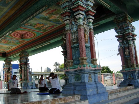在庙中练习瑜伽的印度教女子信徒。