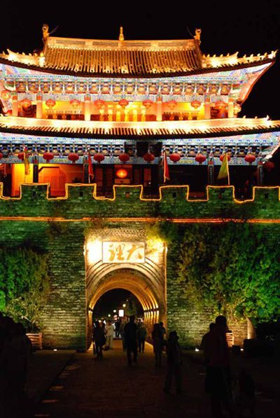 古城大理是我国第一批24座历史文化名城之一,位于南诏和大理国都城遗址的东部,方圆12里,城墙高2丈5尺,厚2丈;东西南北各有一城门,上有城楼,分别称做:通海、苍山、承恩、安远;城的四角还有角楼,也各有名称:颍川、西平、孔明、长卿。城墙的外墙为砖,上列矩堞,下环城沟。城内市井俨然,布局呈棋盘状,从南到北有5条街,从东到西8条巷。如今保存下来的还有南北城的部分城墙、南城楼。