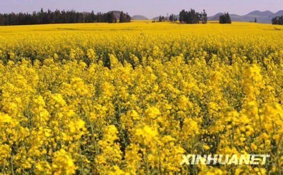 2月3日,罗平县生态油菜种植园一片油菜花盛开的田园。新华社记者 陈海宁 摄