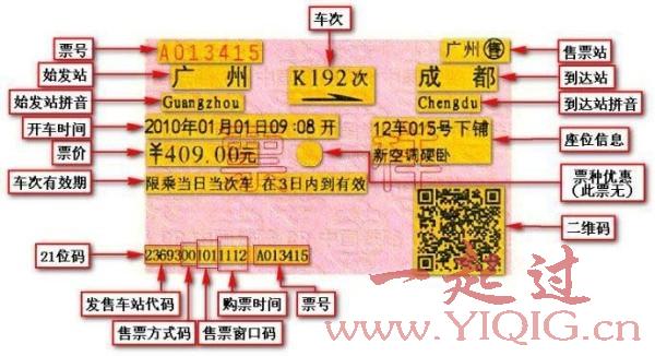 (1). 最左上角的红色字体为票号,表明对于某台售票窗口或终端连续售票的编号,由字母和6位数字组成。有时字母前方还有数字,一般表示售票窗口编号。这个是一票一号,出现票号相同的几率几乎为零。