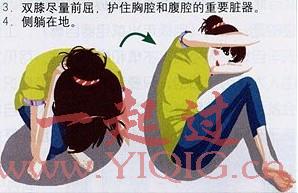 6.若被推倒,要设法靠近墙壁。面向墙壁,身体蜷成球状,双手在颈后紧扣,以保护身体脆弱的部位。▲
