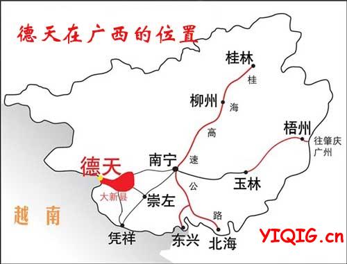 南宁—大学路—那桐—古潭—大新—德天—明仕-大新-南宁德天距离大新县城78公里,德天瀑布交通从南宁驱车前往大新县城约140公里,县城距德天瀑布60余公里,各处景点基本有车可达,交通很便利。