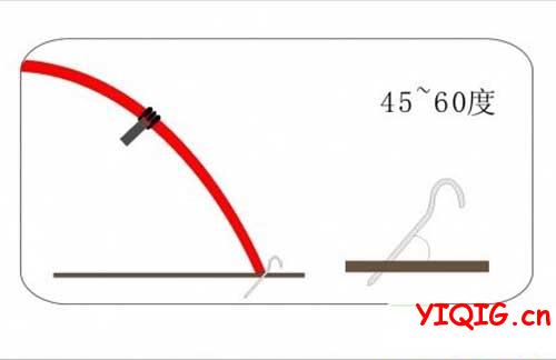 钆帐钉时,不要90度角下钉,帐钉应该和帐杆成直角的角度,才会有最大的固定阻力。所以一般是与地面45-60度角来下钉的。