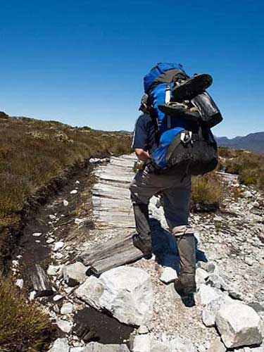 登山是耗费体能的活动。因此在行的方面,若不懂得节省体能,往往一走就累,甚至未走先衰。以前爬山时我们曾戏谑地说:“能躺着的时候绝不坐着,能坐着的时候绝不站着!”“不到最后关头,背包绝不轻易上肩!”其背后的意含就是省力原则。事实上,走路最重要的是要会调节气息与行进速度,才可能走得轻松,安步当车。通常我们会配合行进节奏,把气吸到腹部,再缓缓呼出;切忌横冲直撞地乱闯,才不会浪费无谓的体力,流汗过多。