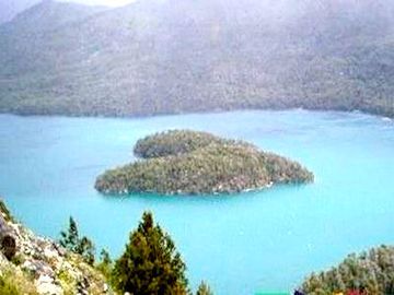 南美巴塔哥尼亚的Gutierrez湖的心形岛屿
